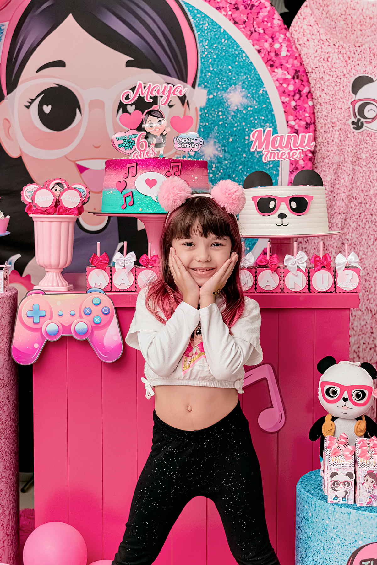 Ela estava radiante de alegria, dançou sem parar com as suas amigas e com a irmãzinha Manu, que completava 7 meses de fofura!
